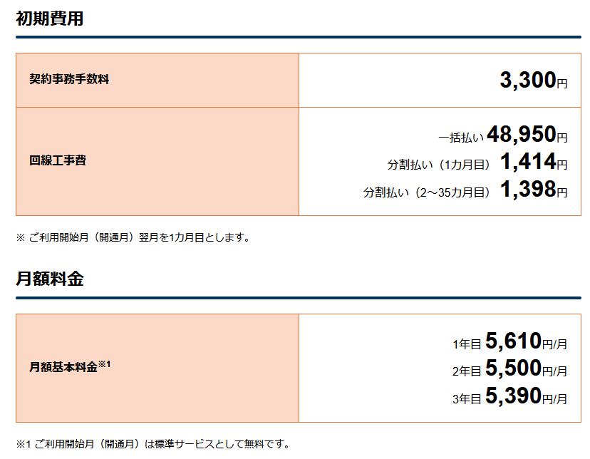 - 工事費(戸建て):48,950円(税込)