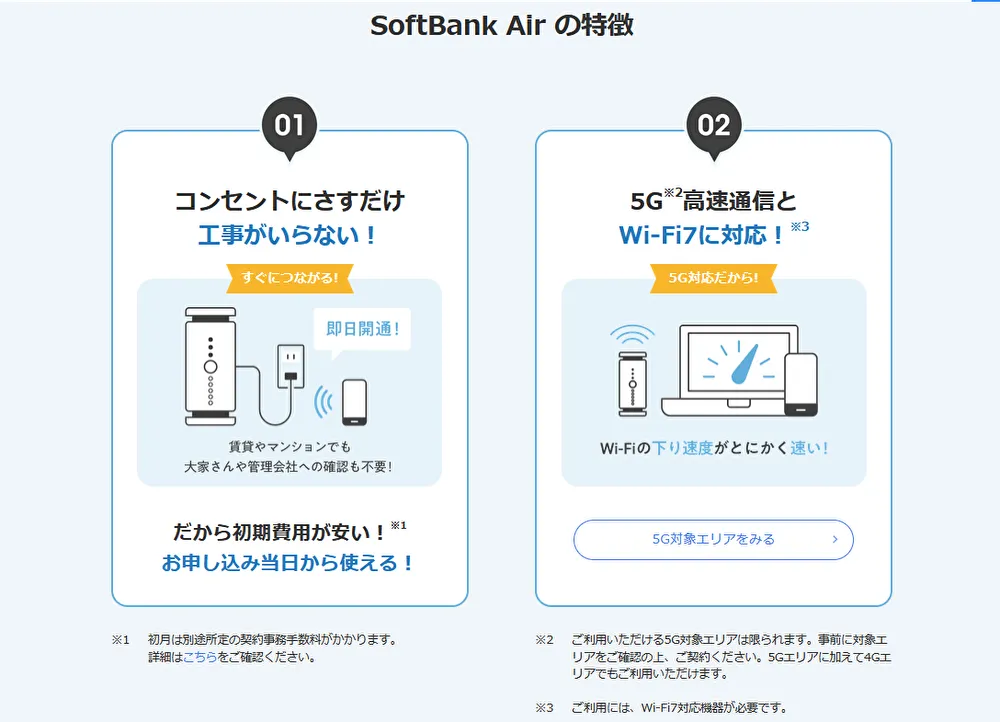 ソフトバンクエアーは、工事不要でコンセントに挿すだけで利用を開始できる手軽さが最大のメリットです。