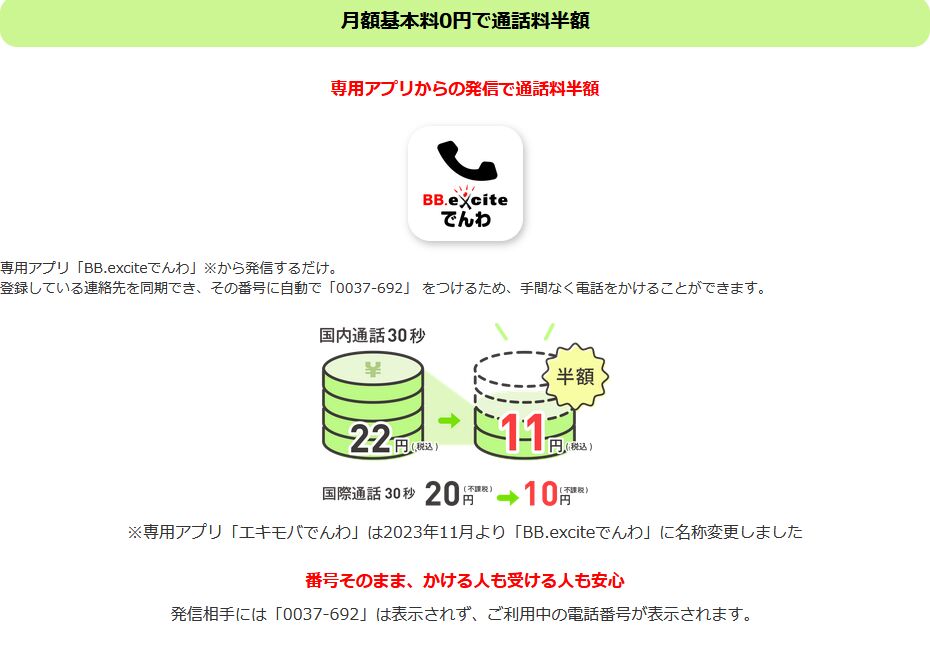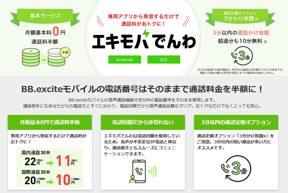 【BB.exciteモバイル】エキモバでんわ