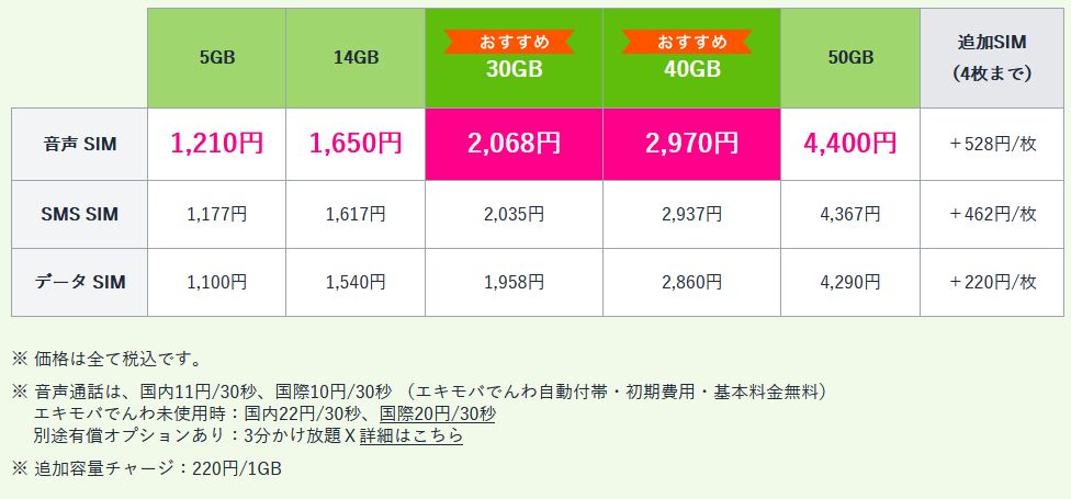 エキモバでんわは月額0円で、エキモバでんわからの音声通話なら通話料も半額となるので入れておいて損はないでしょう。
